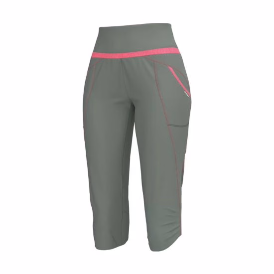 Gefertigt aus einem hochwertigen Gewebe in Canvas-Optik, kühl und bi-elastisch, garantiert sie hohen Komfort am Berg und im Alltag. Das moderne Design mit dynamischen Linien verleiht dem Kleidungsstück einen eleganten, femininen Look und betont die Silhouette.